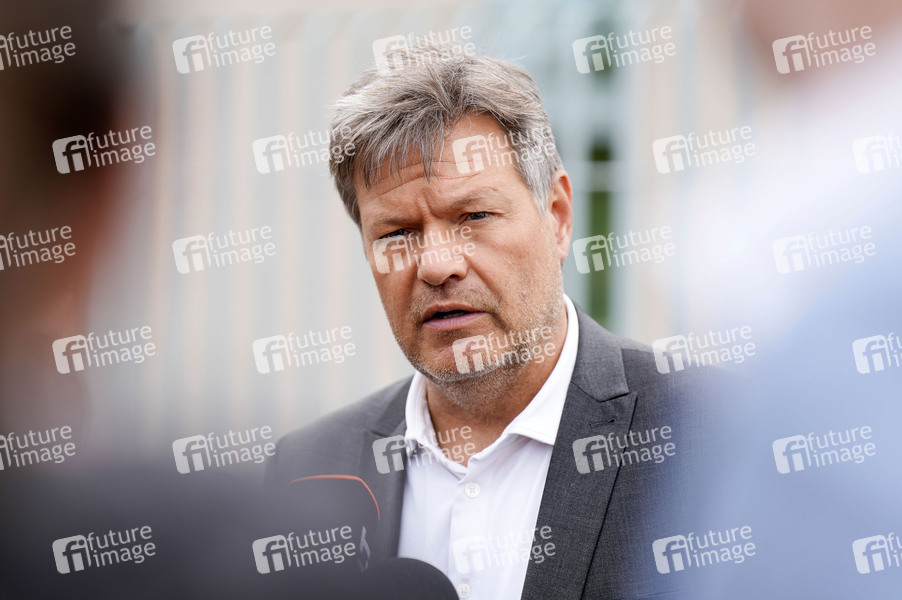 Robert Habeck beim Pressestatement zum Kabinettbeschluss zum Wasserstoffbeschleunigungsgesetz und zur Carbon Management Strategie vor dem Bundeskanzleramt. Berlin, 29.05.2024