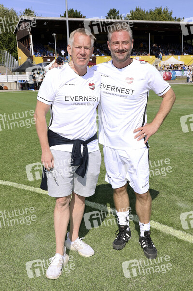 Johannes B. Kerner und Sasha beim Benefiz-Fußballspiel 'Kicken mit Herz' 2022 zu Gunsten des Herzzentrums des UKE im Stadium des SC Victoria. Hamburg, 04.09.2022