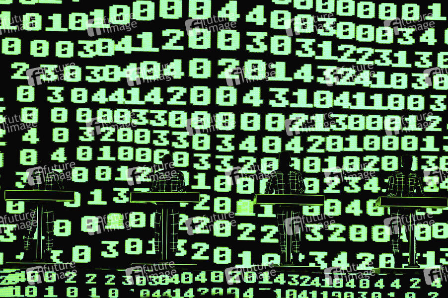 Kraftwerk live bei einem Konzert ihrer 'Multimedia Tour' in der Mitsubishi Electric Halle. Duesseldorf, 14.12.2025