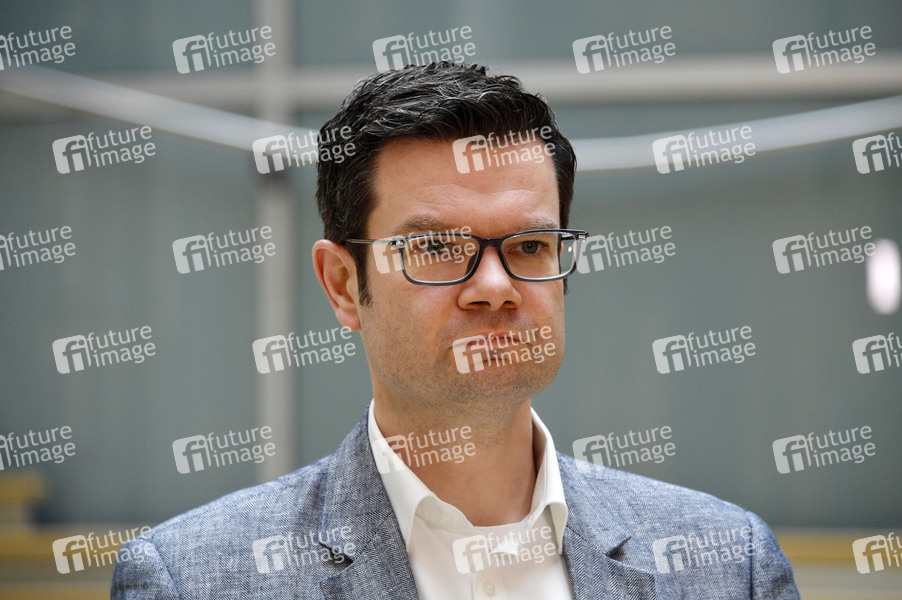 Marco Buschmann bei einem Pressestatement der FDP zum Urteil des Bundesverfassungsgerichtes zum Bundes-Klimaschutzgesetz im Jakob-Kaiser-Haus. Berlin, 29.04.2021