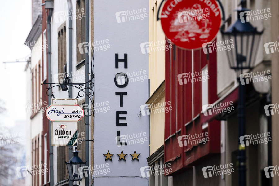 Ein Hotel in der Kölner Altstadt. Immer mehr Hotels in Köln und Bonn bieten so genannte Home-Office-Zimmer an. Die Corona-Schutzverordnung erlaubt diese Art der Hotelnutzung in NRW, auch, dass Hoteliers ihre Gäste per Room-Service bewirten können. (Themenbild, Symbolbild) Köln, 15.03.2021