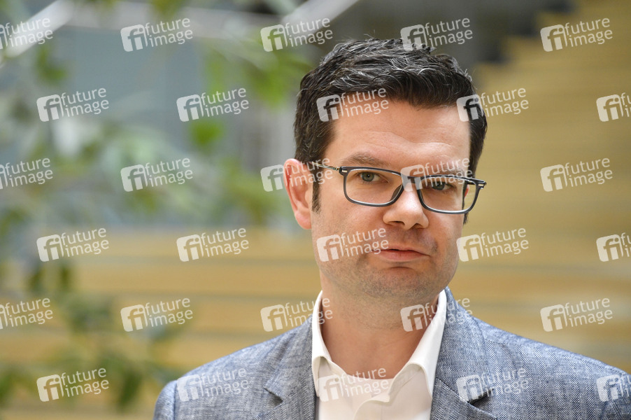 Marco Buschmann bei einem Pressestatement der FDP zum Urteil des Bundesverfassungsgerichtes zum Bundes-Klimaschutzgesetz im Jakob-Kaiser-Haus. Berlin, 29.04.2021