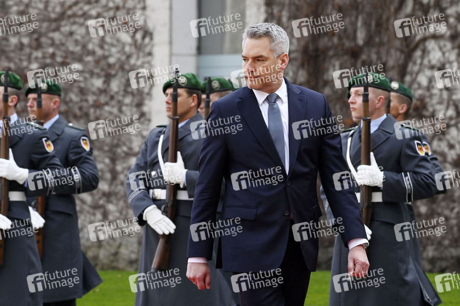 Karl Nehammer beim Empfang des Bundeskanzlers der Republik Österreich durch den Bundeskanzler Olaf Scholz mit militärischen Ehren im Bundeskanzleramt. Berlin, 31.03.2022