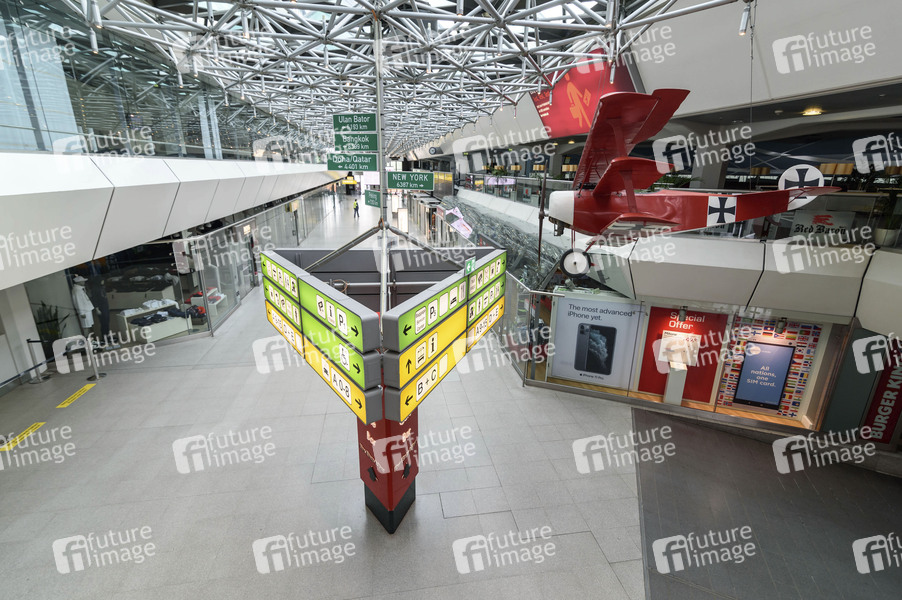 Der Flughafen Tegel ist nahezu menschenleer. Aufgrund des massiven Passierrückgangs, wegen der Corona-Reisebeschränkungen, könnte der Flughafen vorübergehend stillgelegt werden.