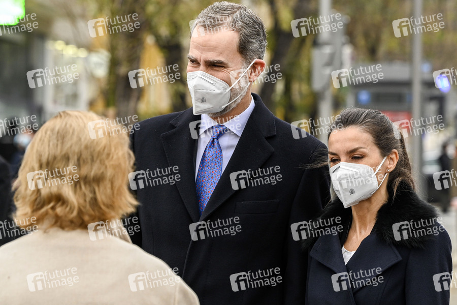 König Felipe von Spanien und Königin Letizia von Spanien bei der Einweihung eines Denkmals des Bildhauers Jaume Plensa auf der Plaza de Los Sagrados Corazone zum Gedenken an das Gesundheitspersonal, das bei der Ausübung ihres Berufs währende der Corona-Pandemie ums Leben kam. Madrid, 18.12.2020
