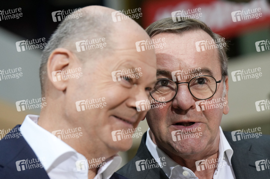 Olaf Scholz und Boris Pistorius bei der Pressekonferenz der SPD nach den Gremiensitzungen zur Beratung aktueller Themen und der Nominierung des SPD-Kanzlerkandidaten für die Bundestagswahl im Atrium vom Willy-Brandt-Haus. Berlin, 25.11.2024