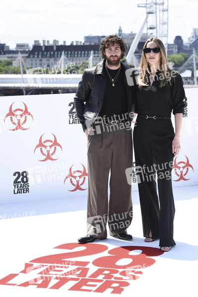 Aaron Taylor-Johnson und Jodie Comer beim Photocall zum Kinofilm '28 Years Later' auf der Dachterasse des IET London Savoy Place. London, 16.06.2025