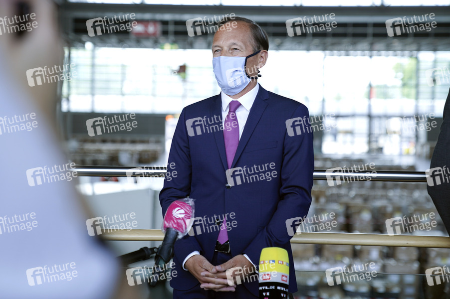 Thomas Wessel (Vorstandsmitglied und Arbeitsdirektor Evonik Industries AG) beim Besuch im Landeslager für Schutzausrüstung an der Messe. Düsseldorf, 03.06.2020