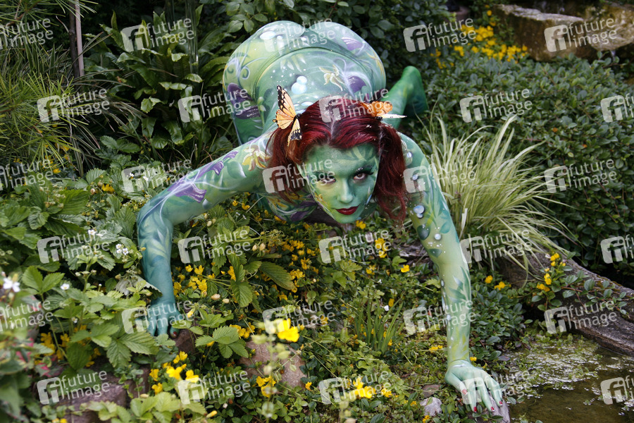 Bodypainting und Fotoshooting mit Model Nadine auf dem 'Tag des offenen Gartens' in Stadthagen-Niedernwöhren. Künstler: Jörg Düsterwald