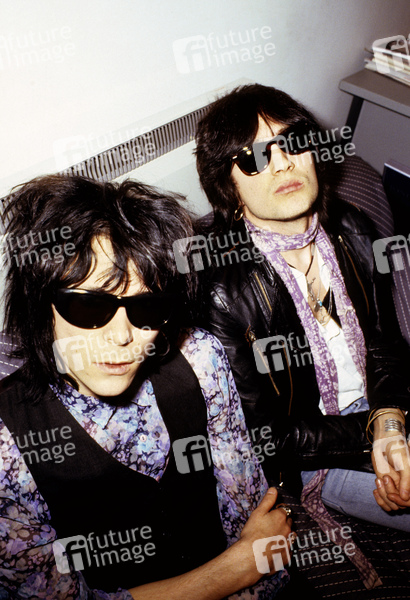 Danny Nordhal und Roger Ericson von The Throbs bei einem Photoshooting in einem Hotel. London, 05.04.1991