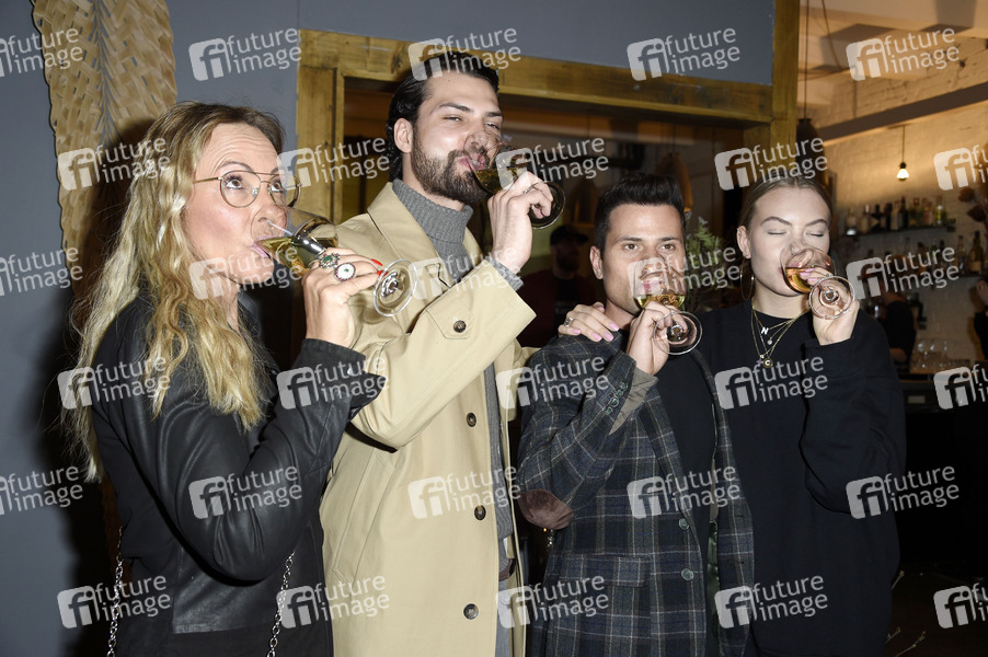 Natascha Ochsenknecht, Jimi Blue Ochsenknecht, Rocco Stark und Cheyenne Savannah Ochsenknecht bei der Präsentation der ersten beiden Weine von Jimi Blue Ochsenknecht im Restaurant heimlichTreu. Berlin, 06.03.2019
