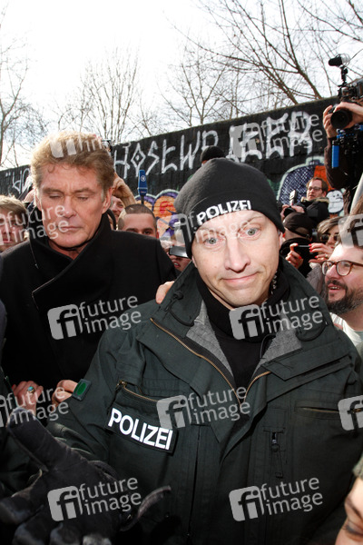 David Hasselhoff protestiert an der East Side Gallery gegen Abbau der Berliner Mauer. Berlin, 17.03.2013