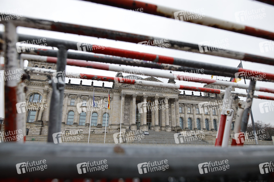 Bundestag, Regierung, Dem Deutschen Volke, Demokratie, Gesetzgeber, Reichstag, Reichstagsgebäude, Regierungssitz, Parlament, Grundgesetz, Flagge, Fahne, Deutschlandfahne, Parlamentsgebäude, Volksvertreter, Demokratie, Abstand halten, Absperrung, Ausbreitung, Beschränkung, Beschränkungen, Bevölkerungsschutz, Coronaepidemie, Coronakrise, Corona-Krise, Coronamaßnahmen, Corona-Maßnahmen, Corona-Pandemie, Corona-Regeln, Corona-Schutz, Corona-Schutzmaßnahmen, Coronaviren, Corona-Viren, Coronavirus, Corona-Virus, Corona, Coronazahlen, Corona-Zahlen, Covid19, Covid-19, Eindämmung, Einschränkung, Einschränkungen, Epidemie, Gesundheit, Corona-Politik, Sturm auf den Bundestag, Gesundheitsgefahr, Gesundheitsgefahren, Gesundheitsschutz, Infektionsschutz, Infektionszahlen, Krise, Masken auf öffentlichen Plätzen, Maskenpflicht, Schutzmaßnahme, Schutzmaßnahmen, Schutz-Maßnahmen, Schutzwirkung, Seuchenschutz, Sicherheitsabstand, verlängerter Lockdown, Innere Sicherheit, Absperrgitter, Sicherheitsmaßnahmen, Abriegelung, Schutz des Bundestags, Symbolfoto, Symbolbild