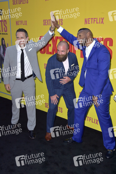 Rick Alvarez, Michael Tiddes und Marlon Wayans bei der Premiere des Netflix-Films 'Sextuplets / Einer von sechs' im Arclight Hollywood. Los Angeles, 07.08.2019