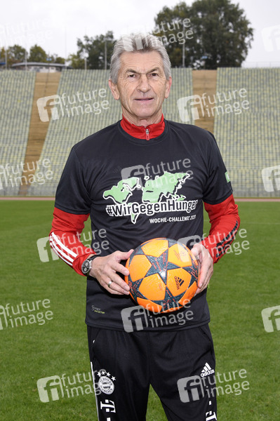 Klaus Augenthaler beim Fototermin zur sportichen '#WocheChallenge' im Olympiastation München. Unter dem Motto 'Wir können was bewegen!' ruft die Welthungerhilfe zu dieser Challenge auf und bittet um Spenden für eine Welt ohne Hunger. München, 13.10.2020