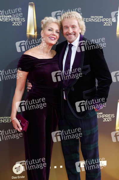 Thomas Gottschalk mit Partnerin Karina Mroß bei der Verleihung des Deutschen Fernsehpreises 2021 im Tanzbrunnen. Köln, 16.09.2021