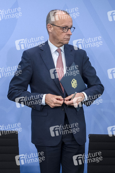 Friedrich Merz bei der Pressekonferenz zur Konferenz der Regierungschefinnen und Regierungschefs der Länder im Bundesratsgebäude. Berlin, 18.06.2025