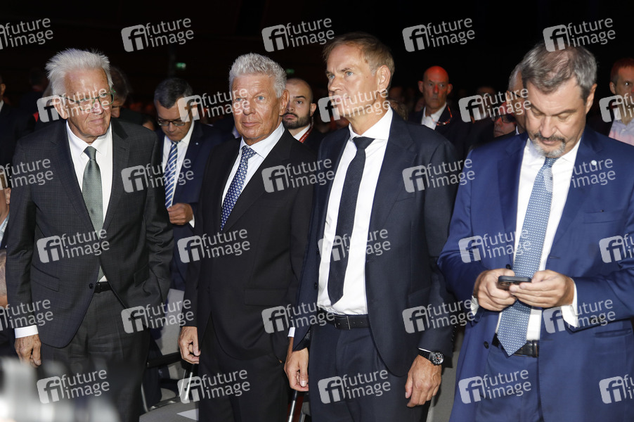 Winfried Kretschmann, Dieter Reiter, Oliver Blume und Markus Söder bei der Eröffnung der Automesse IAA Mobility 2025 in der Messe München. München, 09.09.2025
