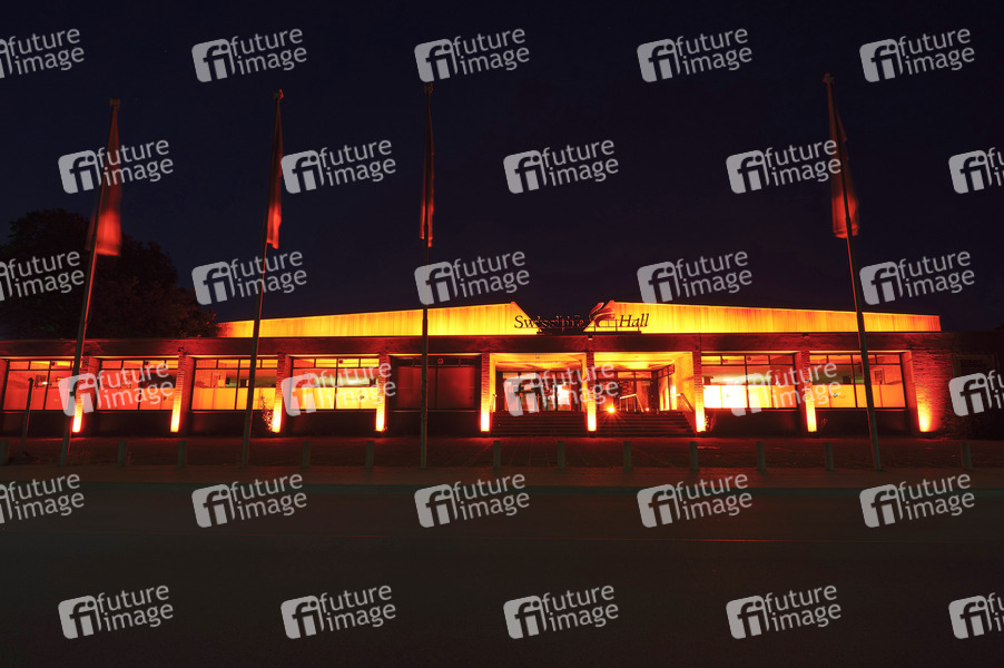 Beleuchtete Swiss Life Hall - Mit der bundesweiten Aktion 'Night of Light' macht die Veranstaltungsbranche auf ihre finanzielle Notlage durch die Corona-Krise aufmerksam. Hannover, 22.06.2020