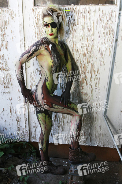 Bodypainting, Erotik, Frau, Mädchen, nackt, draußen, weiblich, Körperkunst, Kunst, Malerei, Augenklappe, erotic, woman, girl, nude, outdoor, female, body art, body painting, eyepatch