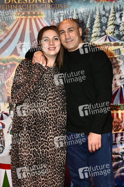 Arthur Abraham mit Ehefrau Mary Abrahamjan bei der Premiere des 27. Dresdner Weihnachts-Circus an der Washingtonstraße. Dresden, 13.12.2024