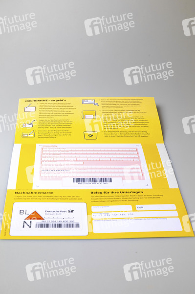 Deutsche Post, Zustellung, Remboursement, Mailorderanbieter, Zahlungssystem, Postpaket, Brief, Nachnahmesendung, Dienstleistung, Zahlung bei Übergabe, Absender, Empfänger, Zusteller, Nachnahmebetrag, Zahlungsanweisung, Ablieferung, Frachtgut, Empfänger, Käufer, Porto, Nachnahmegebühr, Postfiliale, Packstation, Benachrichtigung, Inkassobeleg, Symbolbild, Themenbild