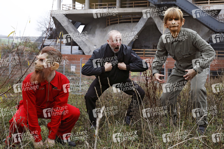 GEEK ART - Bodypainting meets SciFi, Fantasy and more: Enrico Lein mit Models Maria und Paul beim 'Planet der Affen' Photoshooting auf dem Expo-Gelände. Hannover, 02.01.2019 - Ein Projekt des Fotografen Tschiponnique Skupin und des Bodypainters und Transformakers Enrico Lein