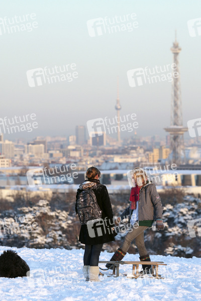 Kinder mit Schlitten auf dem Teufelsberg. Berlin, 05.01.2009