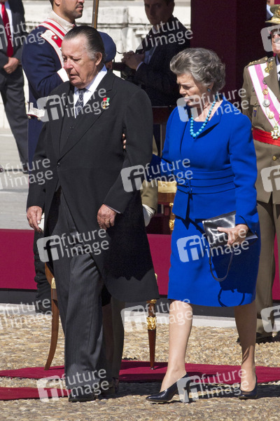 Die Königliche spanische Familie ehrt das Regimiento de Caballeria Acorazado Alcantara Nr.10 am Palacio Real, Madrid