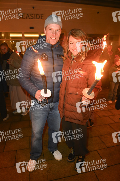 Matthias Schloo und Luise Bähr beim Opening der Baltic Lights 2025 mit Fackellauf an der Seebrücke Heringsdorf. Heringsdorf, 28.02.2025