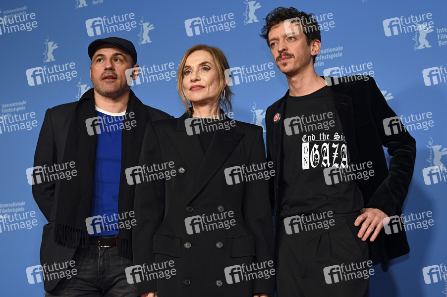 Stephane Rideau, Isabelle Huppert und Nahuel Perez Biscayart bei der Premiere des Kinofilms 'Les gens d'à côté / My New Friends' auf der Berlinale 2024 / 74. Internationale Filmfestspiele Berlin im Zoo Palast. Berlin, 19.02.2024