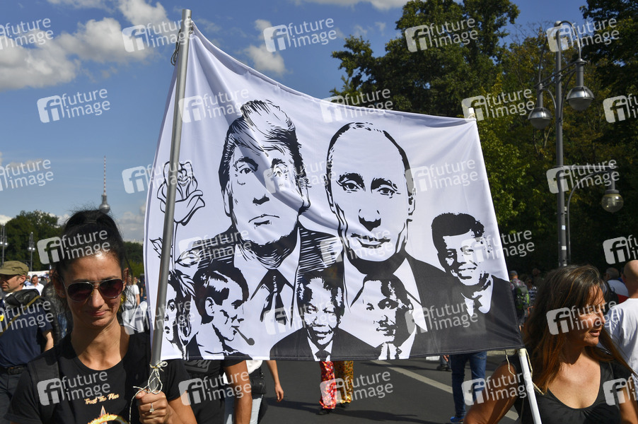 Tausende Menschen demonstrieren gegen die Coronavirus-Auflagen auf der Straße des 17. Juni und am Großen Stern. Außerdem gibt es Gegendemonstrationen. Berlin, 29.08.2020