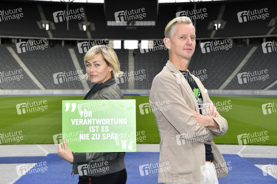 Gesine Cukrowski und Max Raabe beim Fototermin zur sportichen '#WocheChallenge' im Olympiastation Berlin. Unter dem Motto 'Wir können was bewegen!' ruft die Welthungerhilfe zu dieser Challenge auf und bittet um Spenden für eine Welt ohne Hunger. Berlin, 09.10.2020