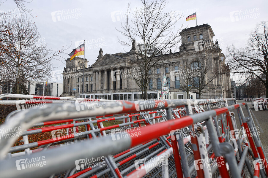 Absperrgitter stehen vor dem Bundestag. Ab Mittwoch gilt nach Willen der Bundesregierung der ein harter Lockdown. Geschäfte, Schulen und Kitas werden schließen. Für Weihnachten und Silvester wurden strenge Regeln verkündet. (Symbolbild, Themenbild) Berlin, 14.12.202