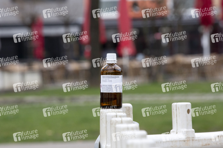Ethanol-Flasche als Desinfektionsmittel zur Auswirkung des Coronavirus. Köln, 19.03.2020