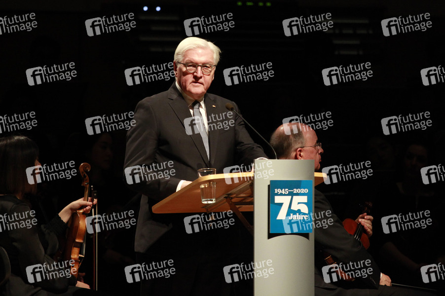 Frank-Walter Steinmeier bei der Gedenkveranstaltung zum 75. Jahrestag der Zerstörung Dresdens im Zweiten Weltkrieg im Kulturpalast. Dresden, 13.02.2020