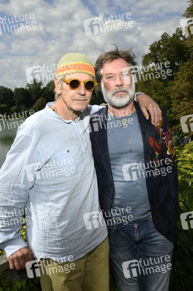Jeremy Irons und Rufus Wainwright beim Pressegespräch zur amfAR Gala 2025 in der Bibliothek im Schloss Leopoldskron. Salzburg, 24.08.2025