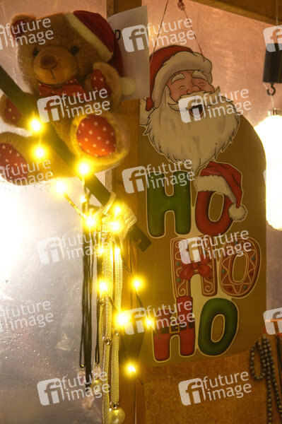 Teddy und Weihnachtsmann auf dem Alt-Rixdorfer Weihnachtsmarkt rund um den Neuköllner Richardplatz. Berlin, 08.12.2024