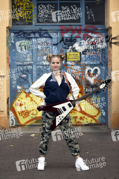 Kiddo Kat spielt ein Straßenkonzert im Rahmen ihrer Street Gig Tour während der Corona-Pandemie in der Limmerstraße. Hannover, 05.10.2020