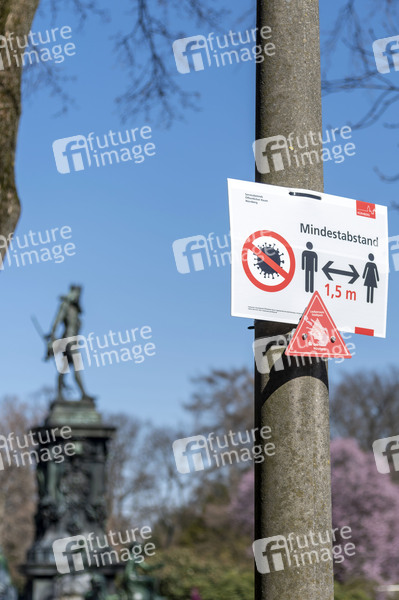 Hinweisschild zum Mindestabstand wegen der Coronakrise im Stadtpark. Nürnberg, 24.03.2020
