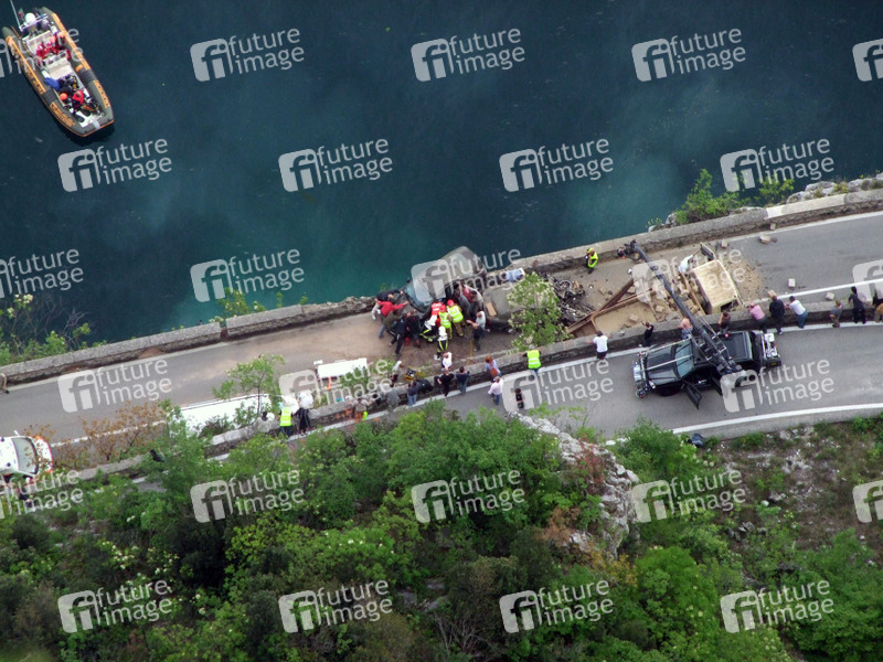 Zwei Stuntmen verletzten sich am Mittwoch, als sie mit dem Auto zunächst gegen einen weiteren Wagen und dann gegen eine Mauer prallten. Der Unfall ereignete sich am Drehort auf der Uferstraße des Gardasees, östliches Ufer, zwischen Limone sul Garda und Campione del Garda, auf Höhe der Ortschaft Pieve de Tremosine