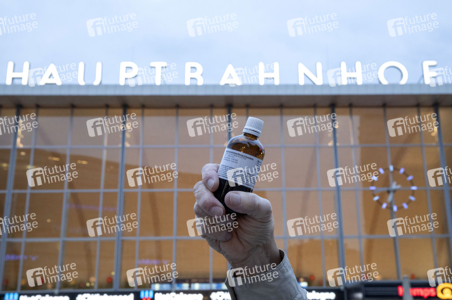 Ethanol-Flasche als Desinfektionsmittel zur Auswirkung des Coronavirus. Köln, 19.03.2020