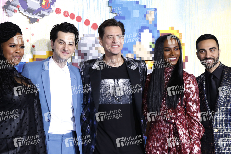 Natasha Rothwell, Ben Schwartz, Jim Carrey, Tika Sumpter und Lee Majdoub beim Special Screening des Kinofilms 'Sonic the Hedgehog' im Regency Village Theatre. Westwood, 12.02.2020