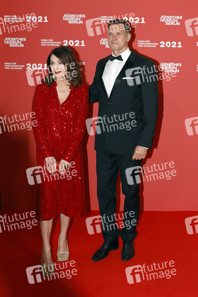 Iris Berben mit Partner Heiko Kiesow bei der Verleihung des 'Preises für Verständigung und Toleranz' im Glashof des Jüdischen Museums. Berlin, 13.11.2021