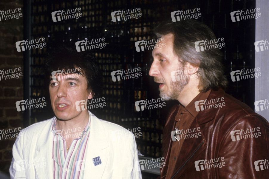 Bill Wyman von Willie and the Poor Boys und John Entwistle von The Who bei einem Pressetermin. London, 18.04.1985