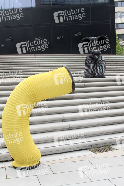 Mitglieder des Maskentheater-Ensembles 'Mummenschanz' in der Hafencity, Hamburg