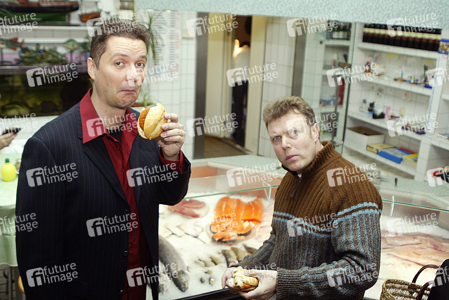 Fotosession mit den Comedy Duo 'Fischbrötchen 1 Euro' in einem Fischgeschäft in Hannover