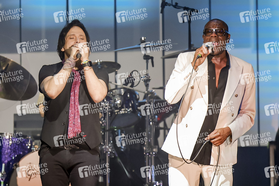 Tim Howar und Andrew Roachford von Mike and the Mechanics live bei einem Konzert der 'Looking Back - Living The Years'-Tour in der Westfalenhalle 2. Dortmund, 17.04.2025