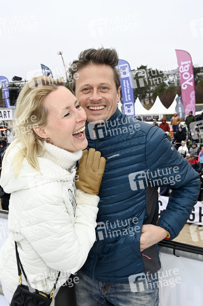 Roman Knizka mit Partnerin Franziska Hippe beim 9. Baltic Lights 2025 Charity-Schlittenhunderennen zu Gunsten der Welthungerhilfe zwischen der Seebrücke Ahlbeck und der Seebrücke Heringsdorf. Heringsdorf, 01.03.2025