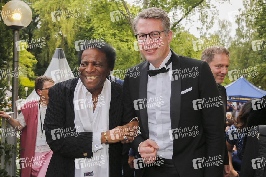 Roberto Blanco und Markus Blume bei der Eröffnung der 112. Richard-Wagner-Festspiele 2024 mit der Neuinszenierung von 'Tristan und Isolde' im Bayreuther Festspielhaus. Bayreuth, 25.07.2024